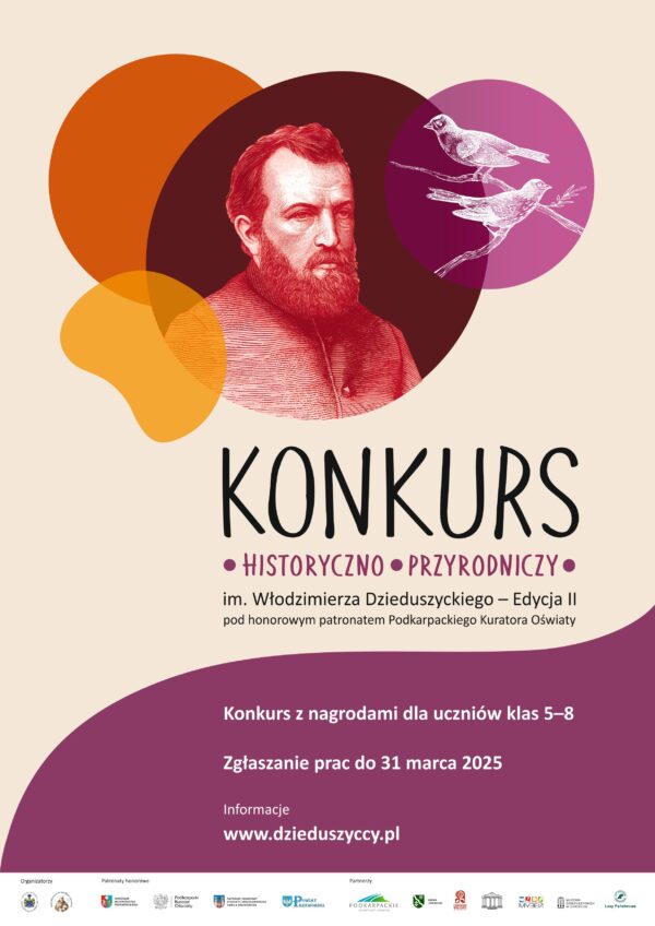 Temat konkursu to PTAKI (zachęcamy do odwiedzenia strony https://dzieduszyccy.pl/konkurs/konkurs-2025/)